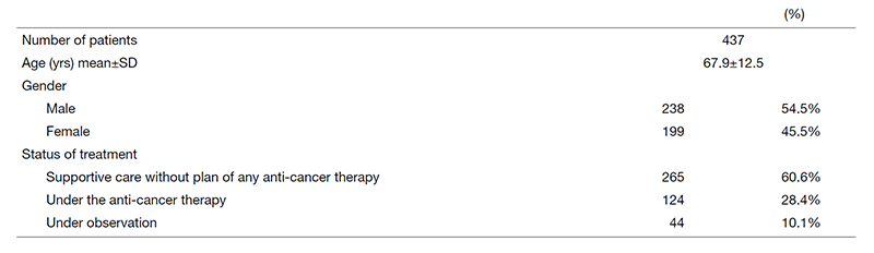 Patients with or without anti-cancer therapy consult our outpatient clinic about management of their symptoms or support to decide where and how to spend their lives (Table 1).