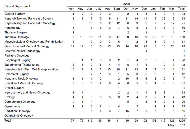 The Nutrition Support Team (NST) had 1,226 new interventions, with a monthly average of 102 (Table 1). The Nutrition Management Office provided 420,645 meals in total. The number of nutritional counseling sessions was 2,779, and group guidance was 337 cases.