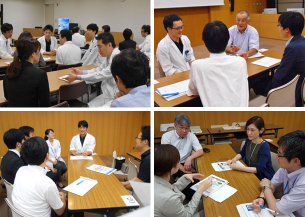 その後、中央病院・東病院(内科・外科)に分かれ、参加者の方に希望診療科のブースをまわっていただきました。各診療科の指導医・現役研修医(レジデント、がん専門修練医等)からは、研修における診療や研究、レジデント生活についてざっくばらんなお話をお聞きいただけたことと思います。