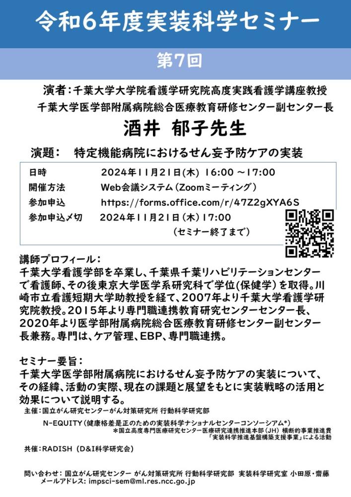 問合せ先:実装科学セミナー事務局 impsci-sem@ml.res.ncc.go.jp