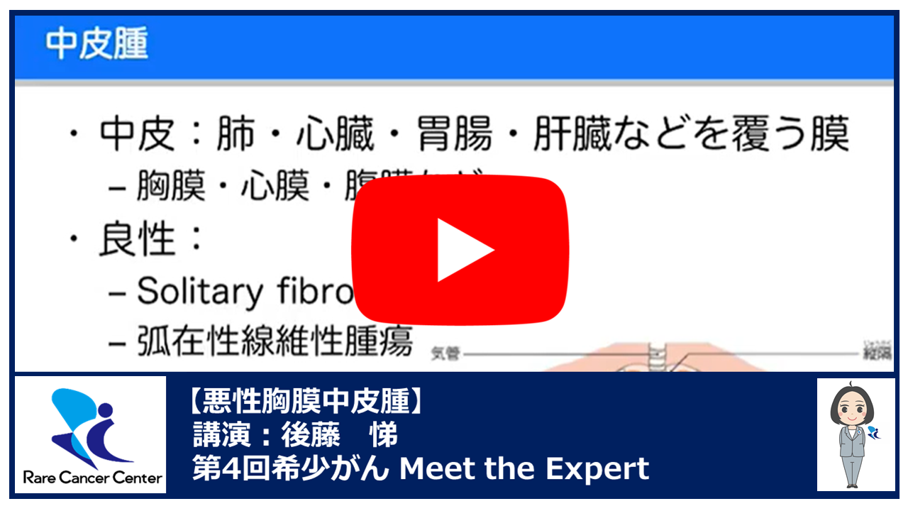 - 動画:「悪性胸膜中皮腫」後藤悌(第21回 希少がん Meet the Expert)