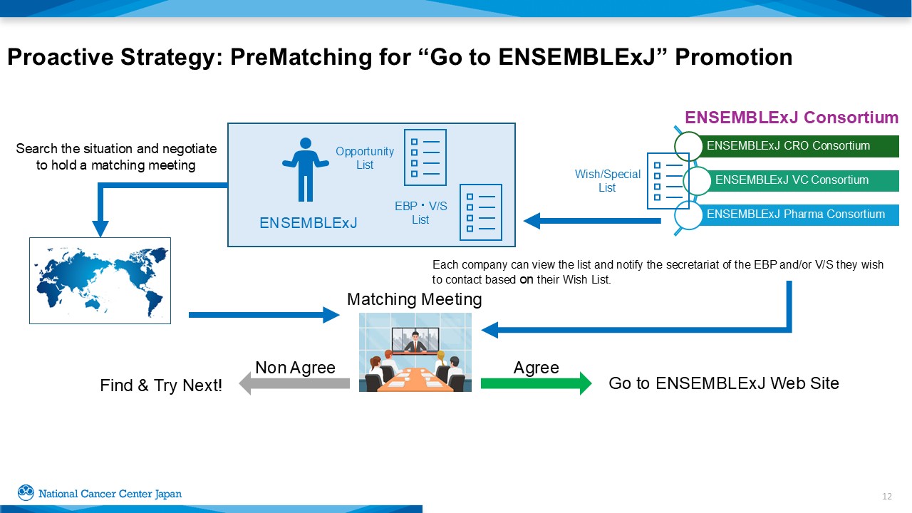 また、コンソーシアムに参加いただいている製薬会社やCROからの要望に応じ、EBPやバイオベンチャーのニーズとも合致すれば、両者のマッチングの場を提供することも可能です。